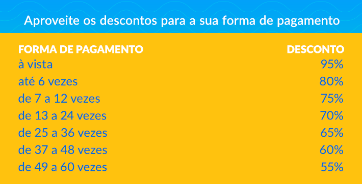 Para pagamentos à vista, os abatimentos podem chegar a 95%, conforme o perfil da dívida. Já nas negociações parceladas, os descontos são progressivos e variam conforme o número de parcelas e a situação do débito, sendo possível dividir o valor em até 60 vezes.
