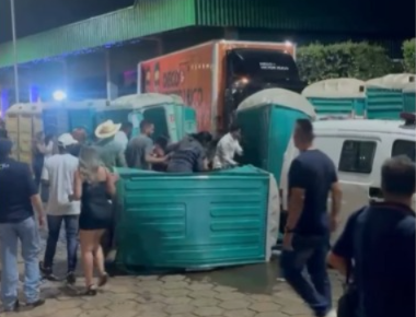 Read MoreCaminhão baú da dupla sertaneja, Diego & Vitor Hugo desgovernado atingiu banheiros químicos durante festa na cidade de Itaberaí, Goiás.