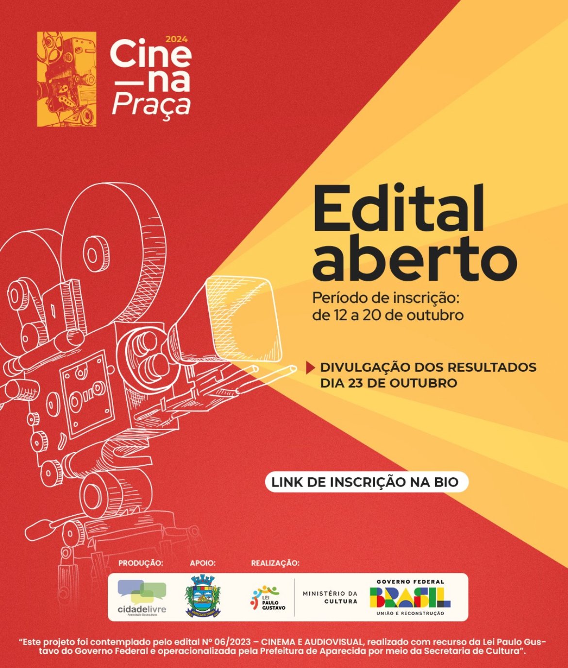 A Associação Sociocultural Cidade Livre, em comemoração aos seus 20 anos, lança o edital de seleção de filmes para o projeto Cinema na Praça. A iniciativa acontece de 26 de outubro a 7 de novembro de 2024, em Aparecida de Goiânia, com objetivo de democratizar o acesso ao cinema nas periferias e regiões metropolitanas.