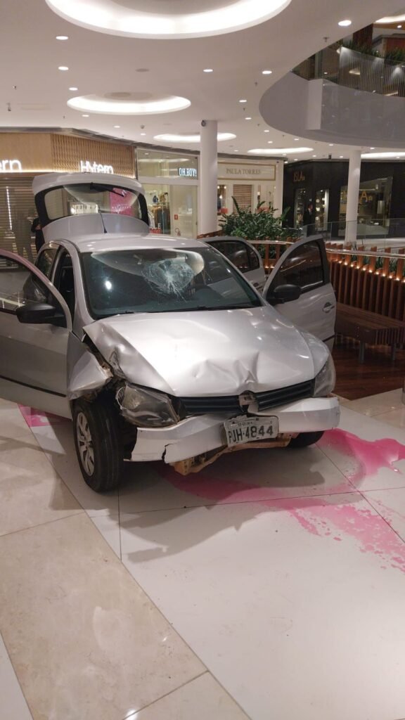 O homem que usava um broche do Partido dos Trabalhadores (PT), saiu da área do estacionamento externo, próxima aos restaurantes e invadiu o comércio quebrando a porta de vidro e seguiu em linha reta. Felizmente os clientes se afastaram quando ouviram o barulho da porta. O veículo atingiu um quiosque de celulares e prosseguiu em direção à escada rolante, mas colidiu com uma coluna e o carro apagou. Os seguranças o conteve até a chegada da polícia.