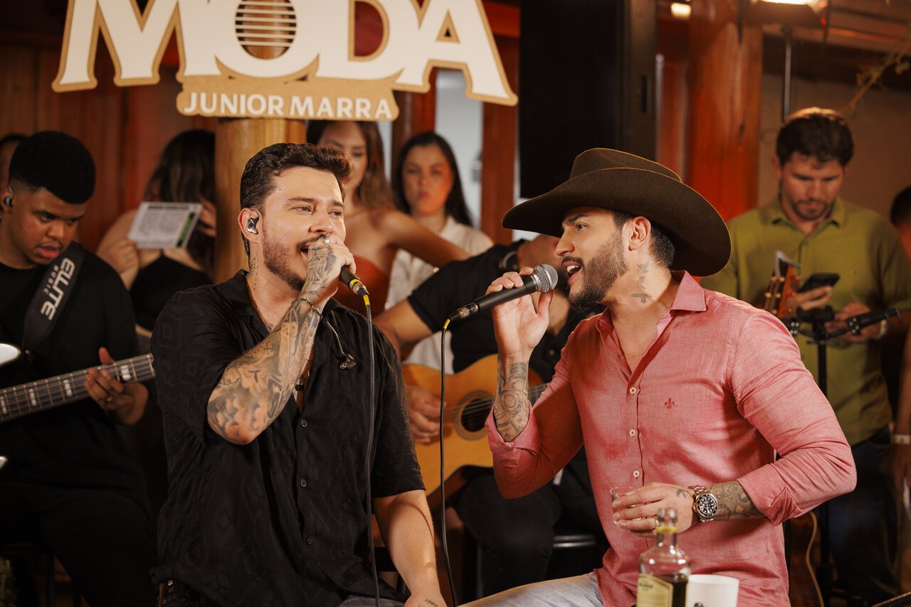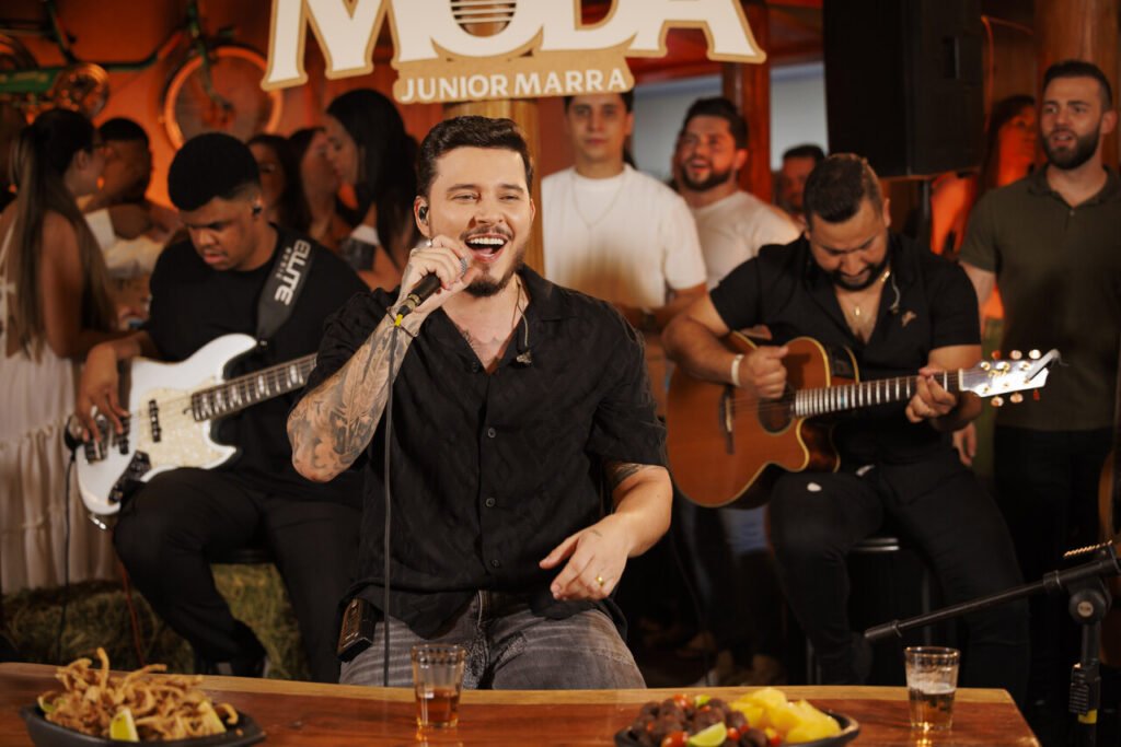 Na última quarta-feira (12), o cantor Júnior Marra transformou o Galo Vei Quintal Caipira, em Goiânia, num palco de resenha e clima de nostalgia. O novo projeto audiovisual “Nunca Sai De Moda” foi gravado de forma intimista, com ares de encontro entre amigos sentados à mesa de bar, e contou com participações especiais de Gabriel Gava, Wesley e Conrado, Kleo Dibah, Jeff Moraes e Renan e Ray.