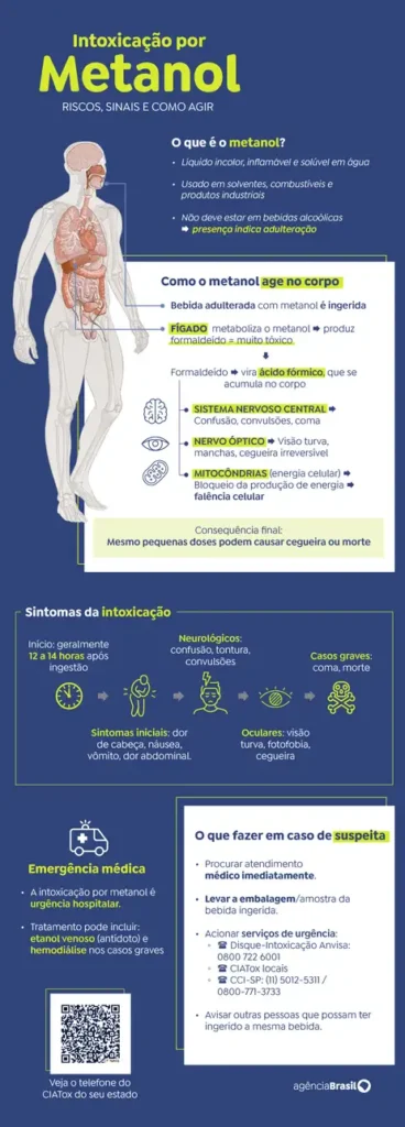 Na quarta (1º), o Ministério da Saúde orientou que os estados e os municípios notifiquem imediatamente todas as suspeitas de intoxicação por metanol. A medida pretende fortalecer a vigilância epidemiológica e garantir uma resposta rápida e eficaz aos casos suspeitos.