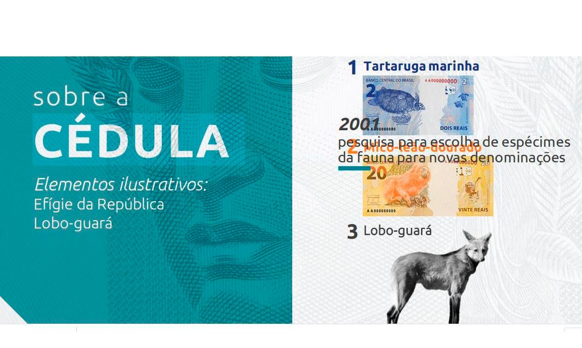 O lobo-guará foi escolhido em pesquisa realizada pelo BC em 2001 para eleger quais espécies da fauna brasileira deveriam ser estampadas nas cédulas do país.