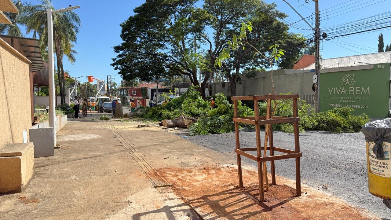 A ação integra o Gabinete de Crise Climática da Prefeitura de Goiânia, que realiza o monitoramento e a avaliação de árvores doentes ou com alto risco de queda em diferentes pontos da cidade, com foco na prevenção de acidentes e na segurança da população.